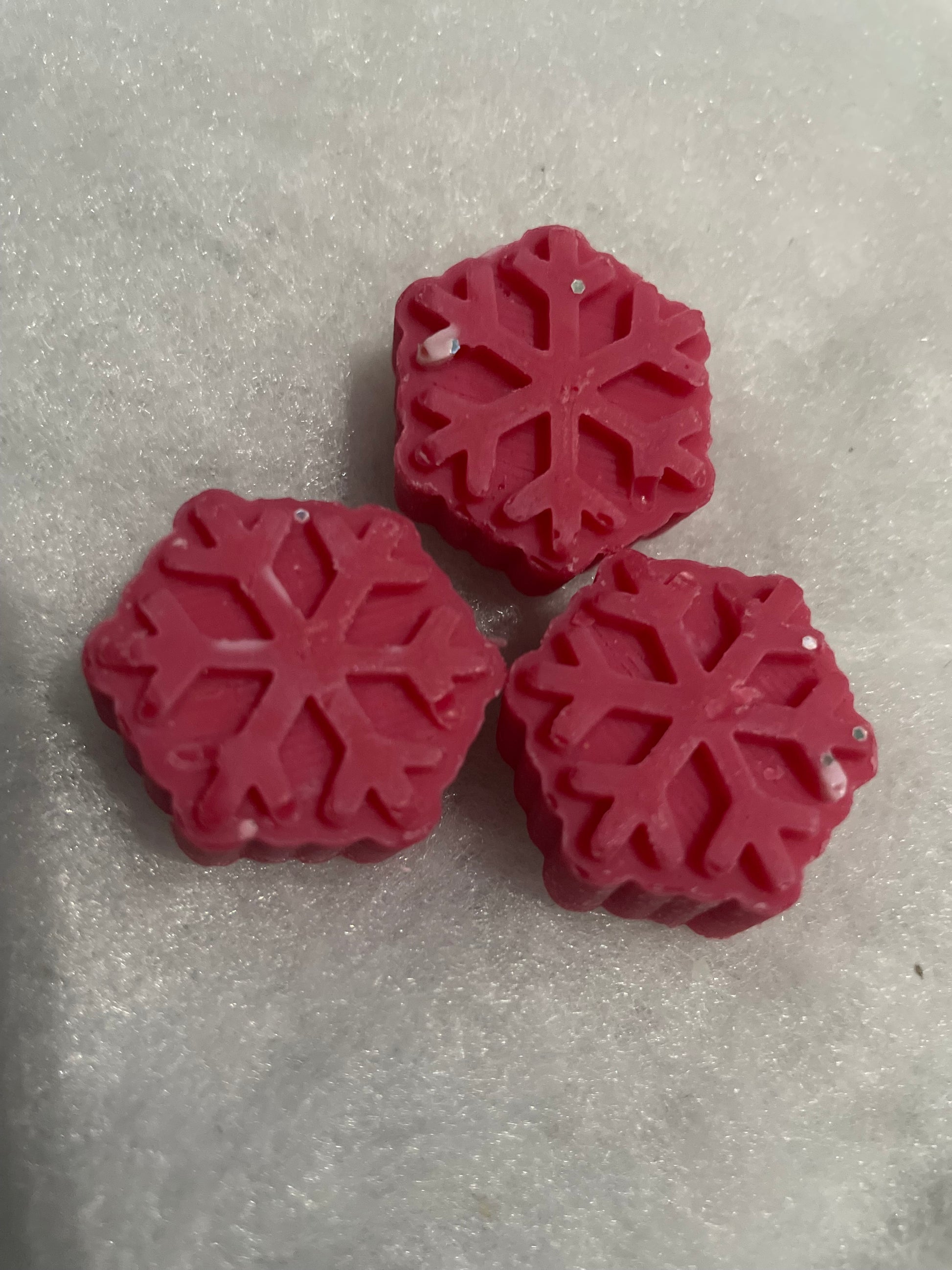 A pack of 9 snowflake shaped wax melts